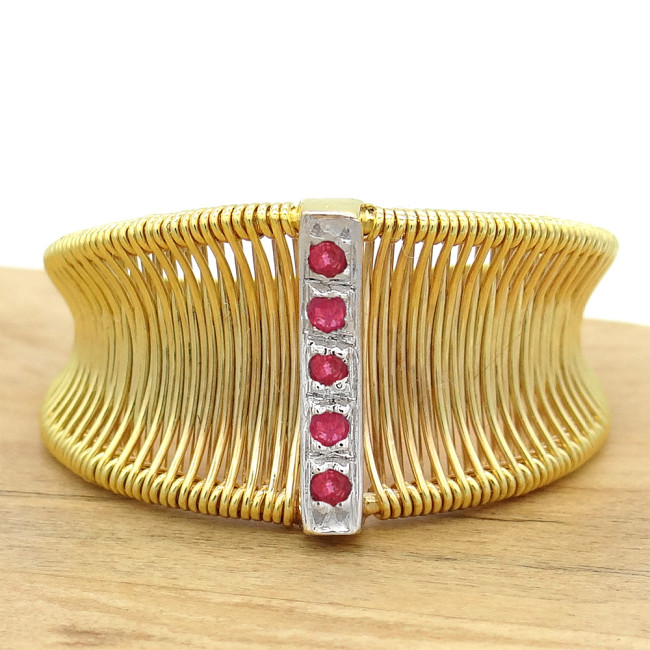 Anel Aramado com 5 Rubis, em Ouro Amarelo 18 Kilates