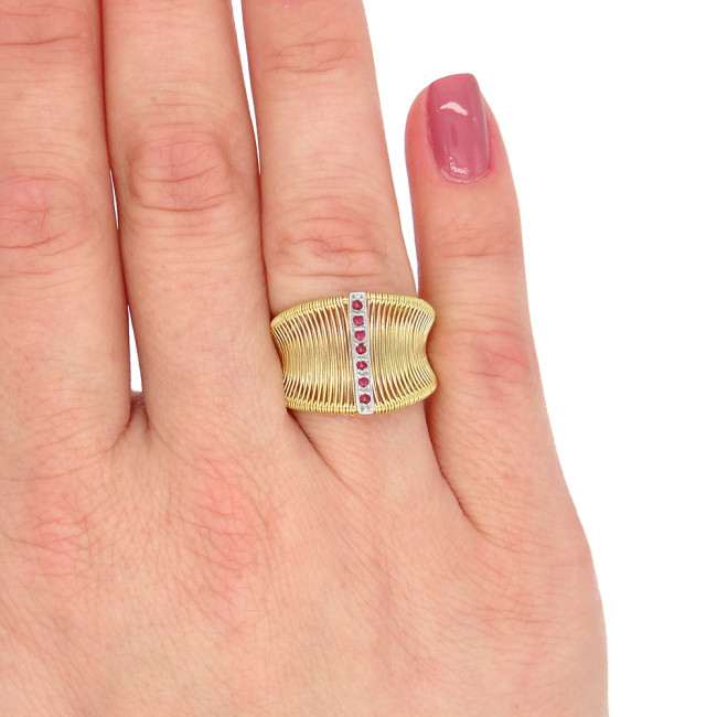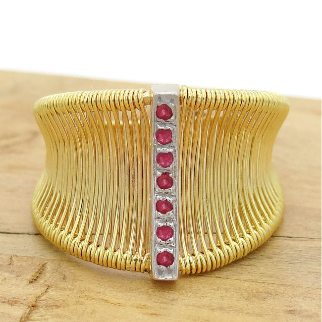 Anel Aramado com 7 Rubis, em Ouro Amarelo 18 Kilates