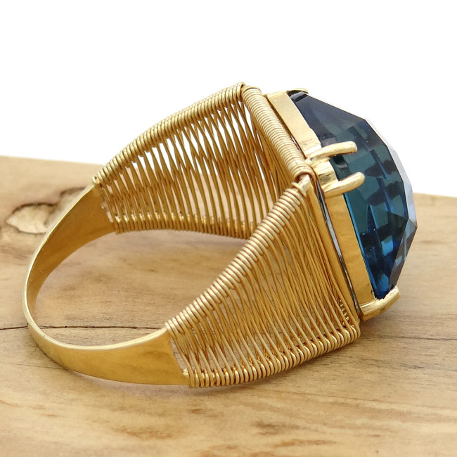 Anel Aramado com London Blue, em Ouro Amarelo 18 Kilates
