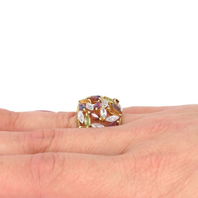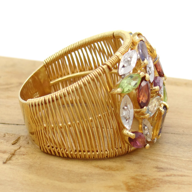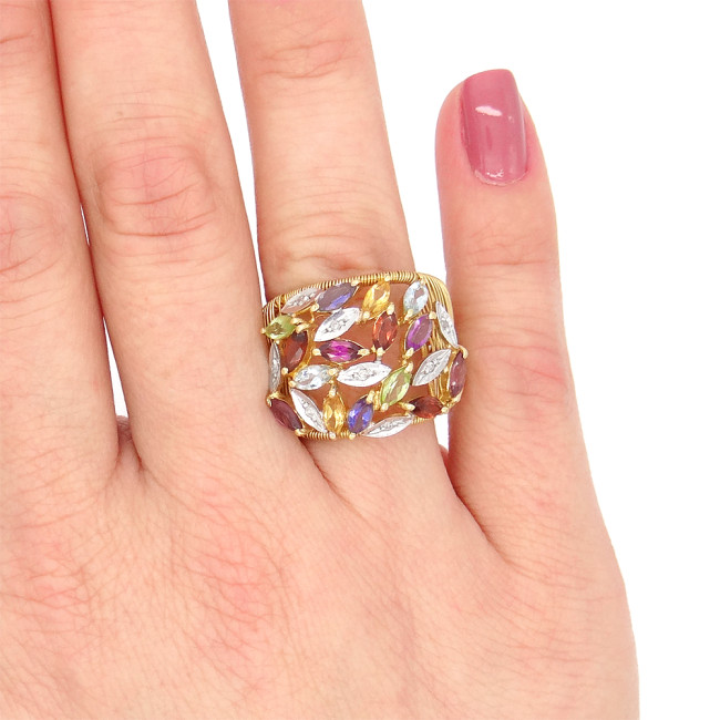 Anel Aramado com Mix de Gemas Brasileiras e 8 Diamantes, em Ouro Amarelo 18 Kilates