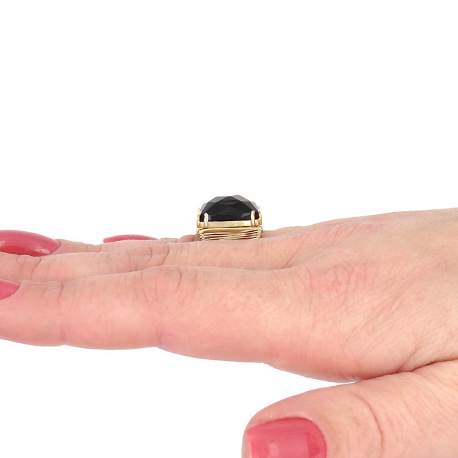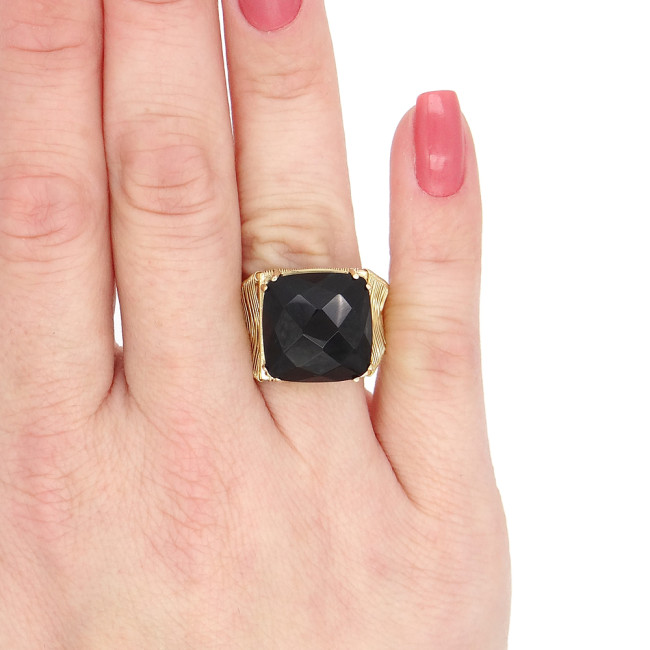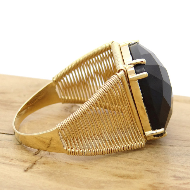 Anel Aramado com Ônix, em Ouro Amarelo 18 Kilates