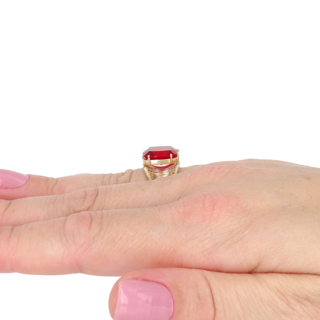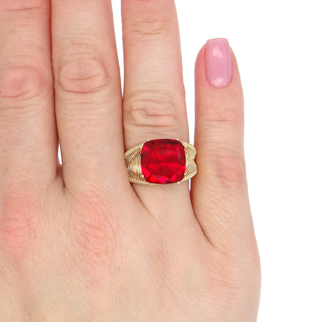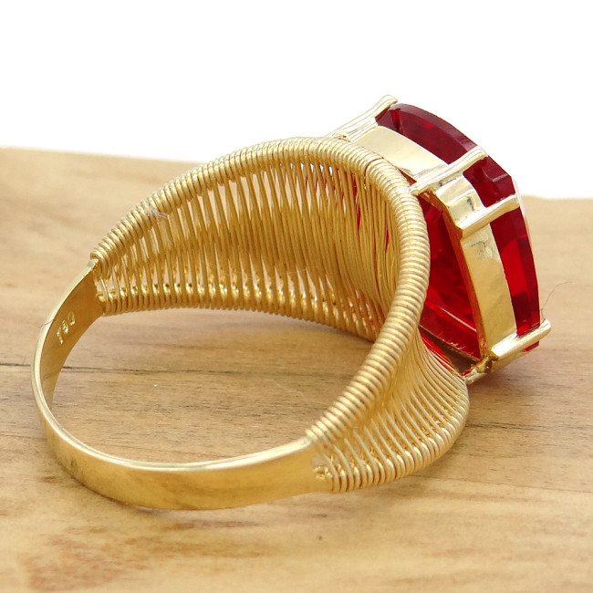 Anel Aramado com Quartzo Rubi Quadrado, em Ouro Amarelo 18 Kilates