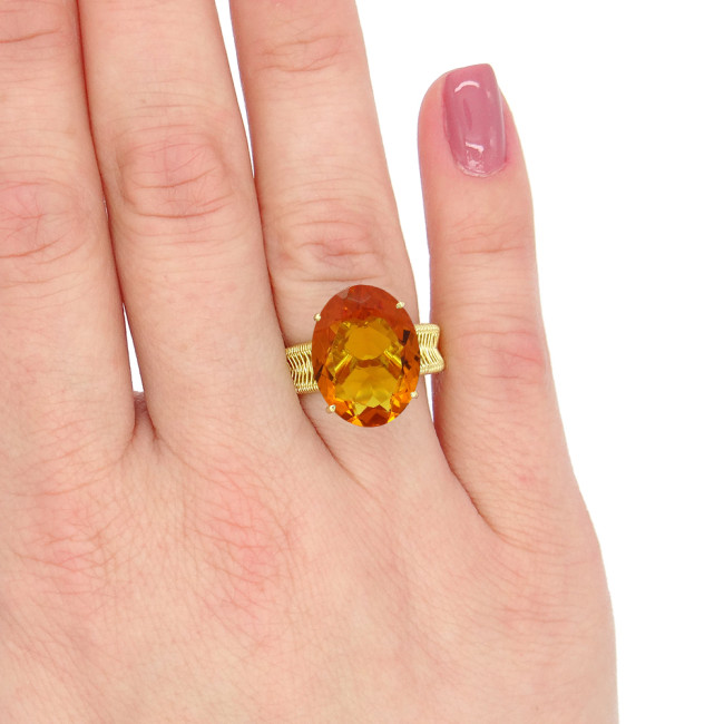 Anel Aramado Oval com Citrino, em Ouro Amarelo 18 Kilates