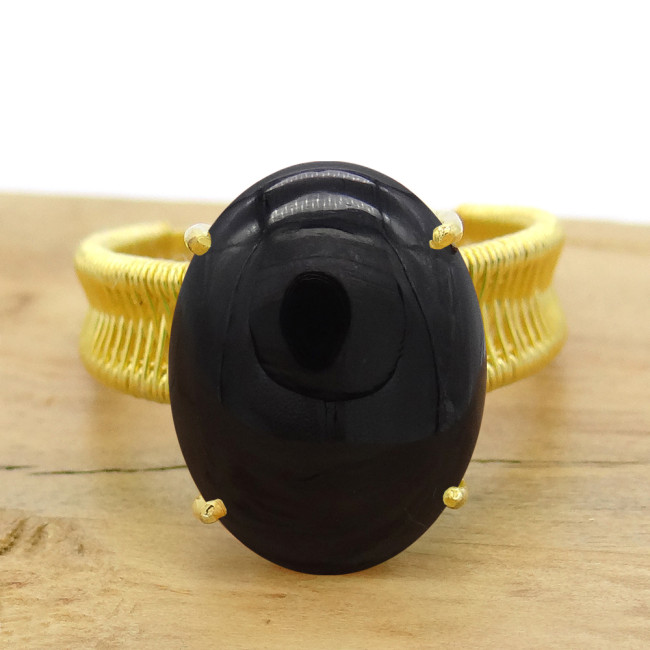 Anel Aramado Oval com Ônix, em Ouro Amarelo 18 Kilates