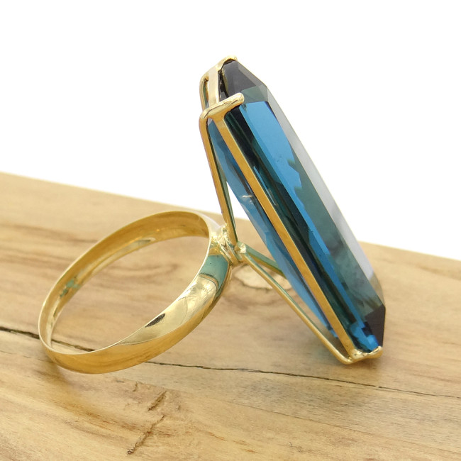 Anel Baguete com London Blue, em Ouro Amarelo 18 Kilates