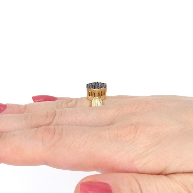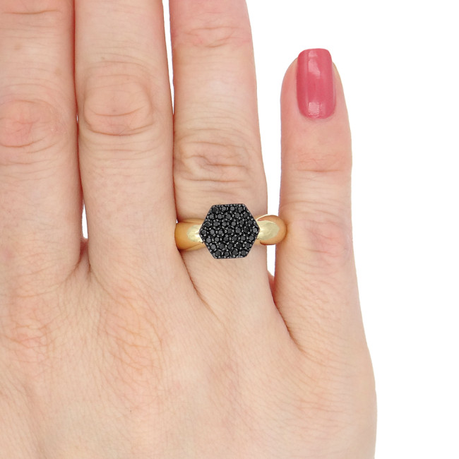 Anel Chuveiro com 37 Diamantes Negros, em Ouro Amarelo 18 Kilates
