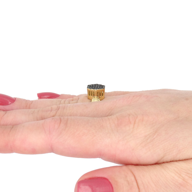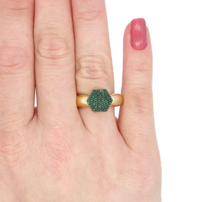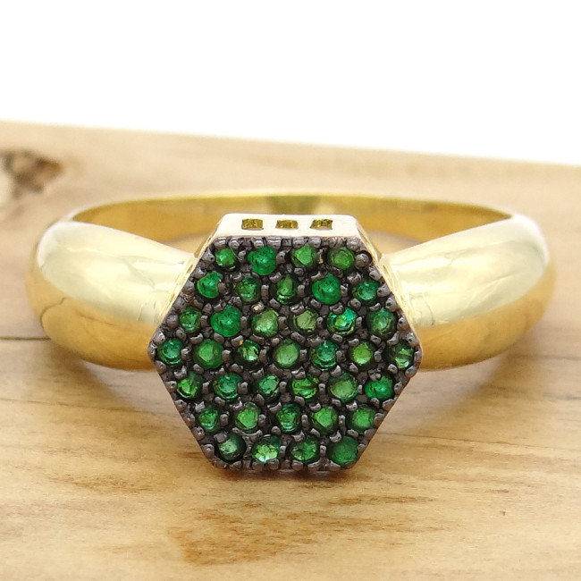 Anel Chuveiro com 37 Esmeraldas, em Ouro Amarelo 18 Kilates