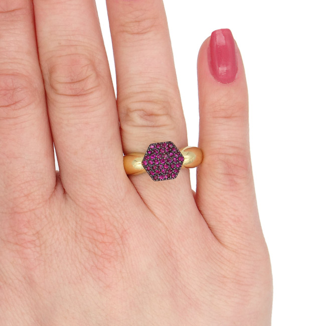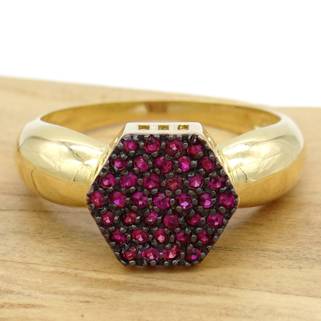 Anel Chuveiro com 37 Rubis, em Ouro Amarelo 18 Kilates