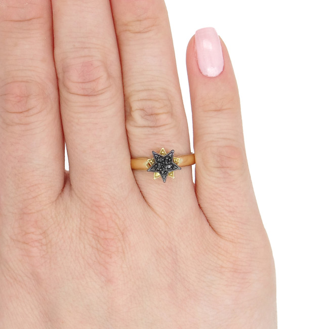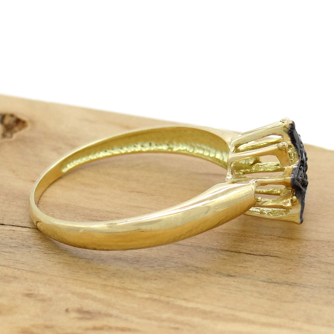 Anel Chuveiro com 5 Diamantes Negros, em Ouro Amarelo 18 Kilates