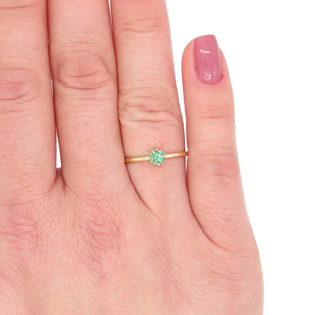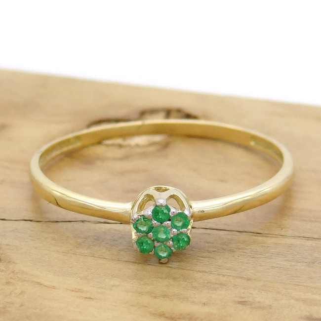 Anel Chuveiro com 7 Esmeraldas, em Ouro Amarelo 18 Kilates