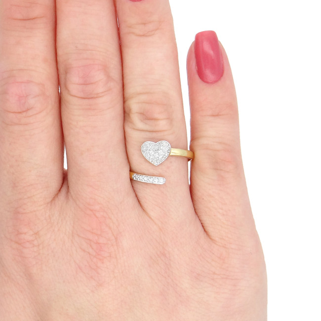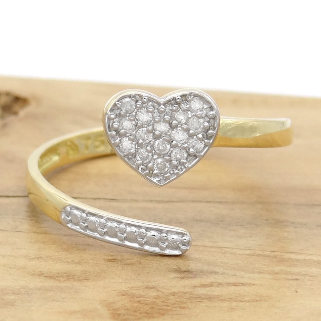 Anel Chuveiro Coração com 15 Diamantes, em Ouro Amarelo 18 Kilates