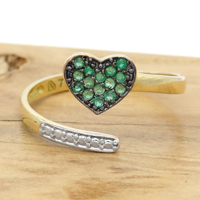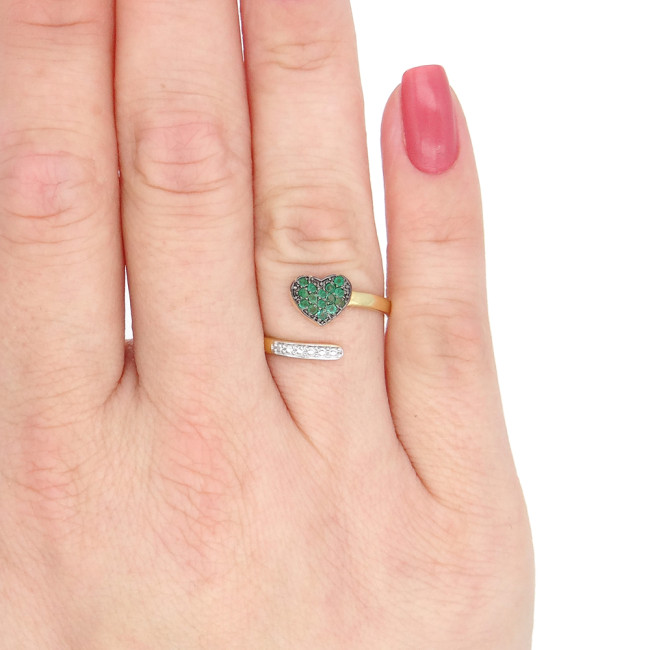 Anel Chuveiro Coração com 15 Esmeraldas, em Ouro Amarelo 18 Kilates
