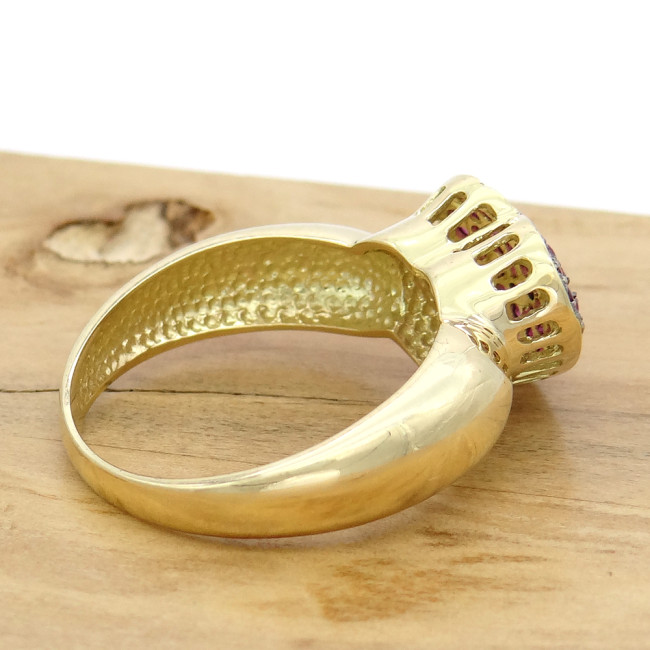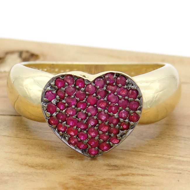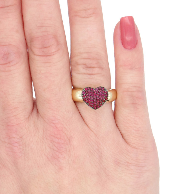 Anel Chuveiro Coração com 51 Rubis, em Ouro Amarelo 18 Kilates