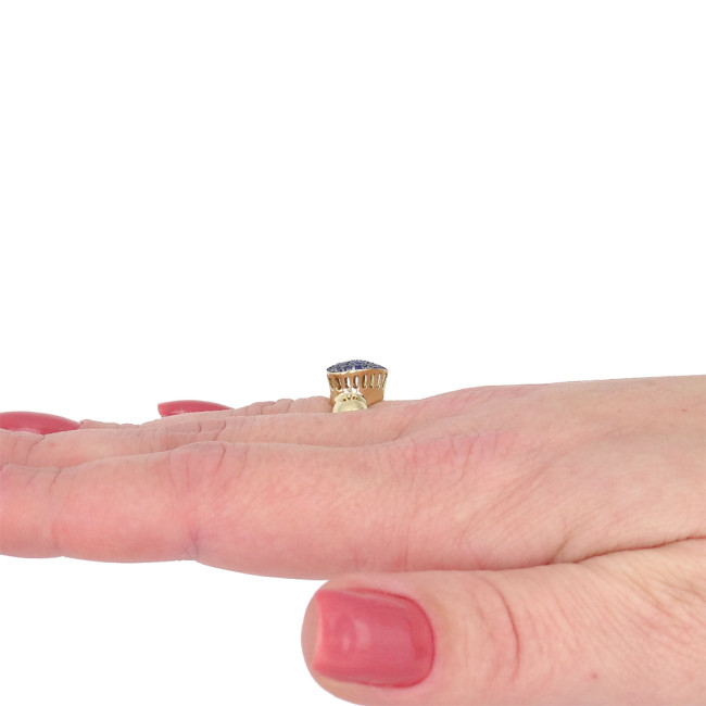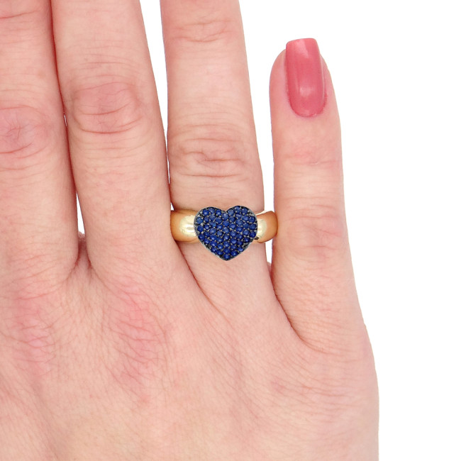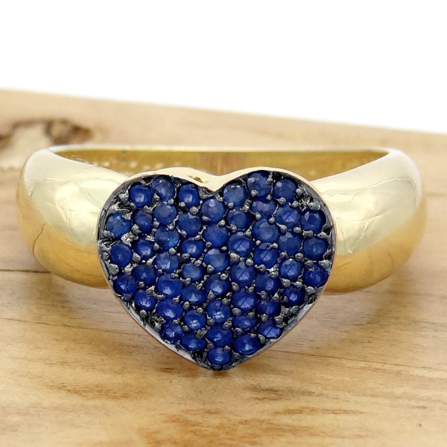Anel Chuveiro Coração com 51 Safiras, em Ouro Amarelo 18 Kilates