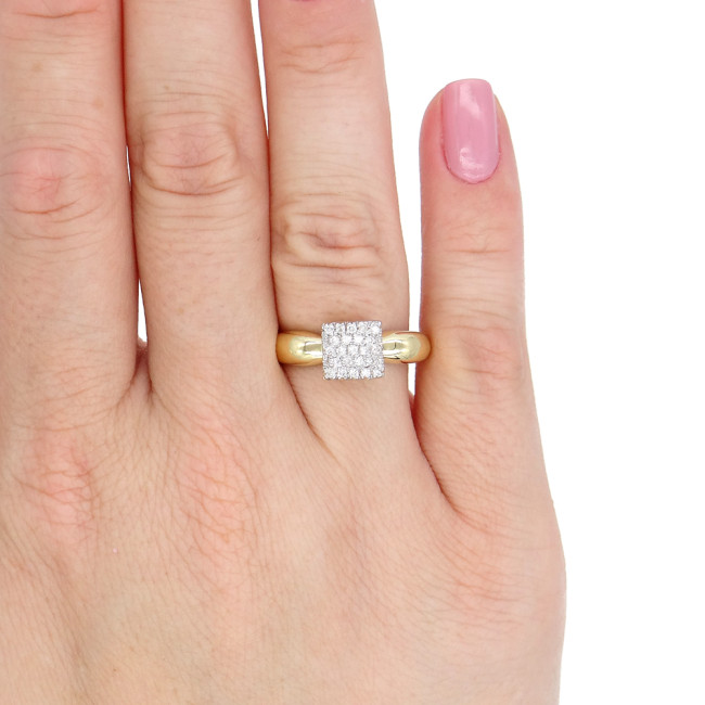 Anel Chuveiro Quadrado com 23 Diamantes, em Ouro Amarelo 18 Kilates