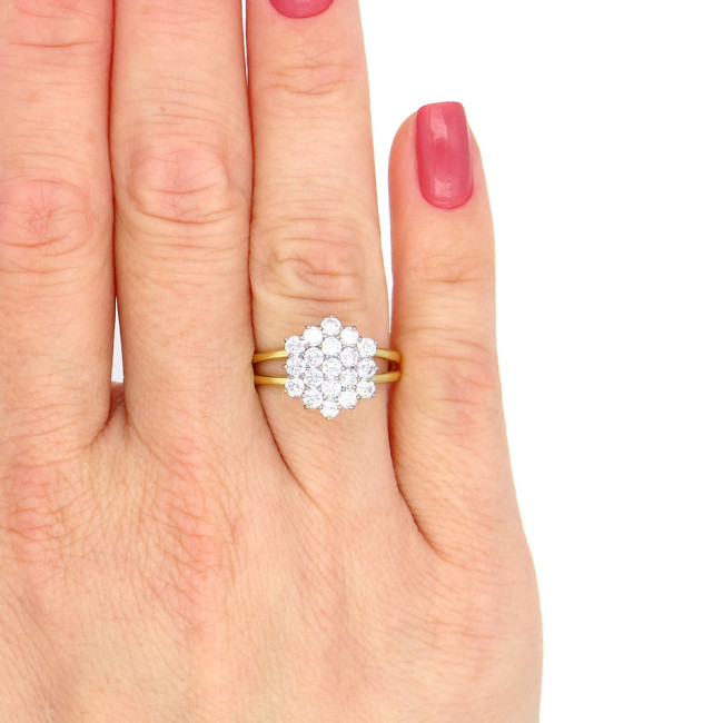 Anel Chuveiro Totalizando 95 Pts de Diamantes, em Ouro Amarelo 18 Kilates