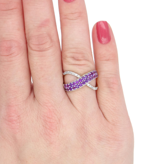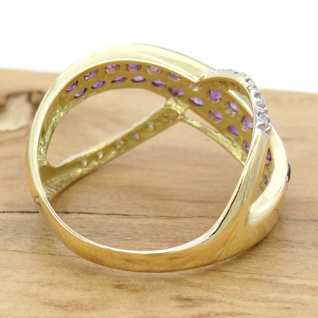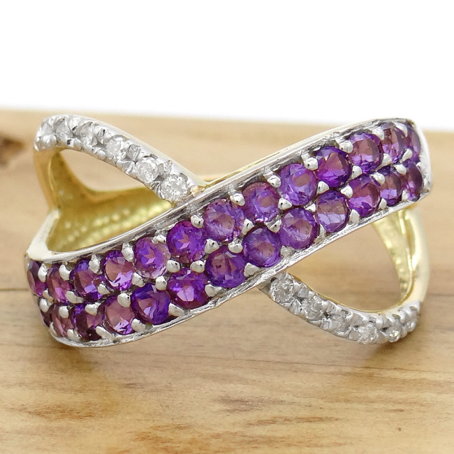 Anel com 26 Ametistas e 12 Diamantes, em Ouro Amarelo 18 Kilates