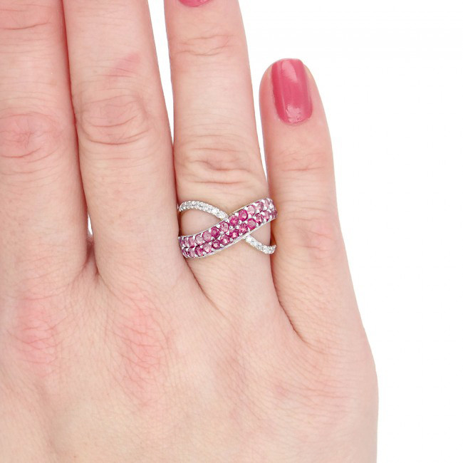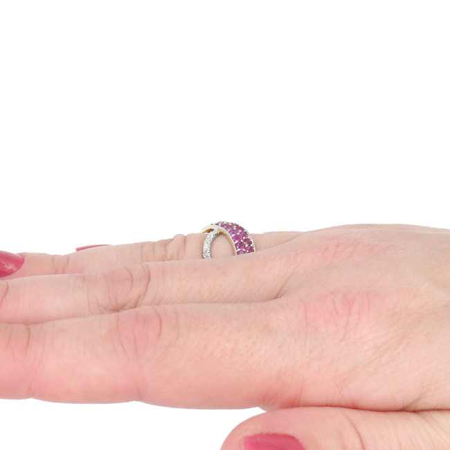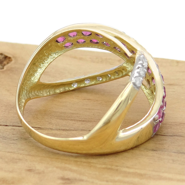 Anel com 26 Safiras Rosas Naturais e 12 Diamantes, em Ouro Amarelo 18 Kilates
