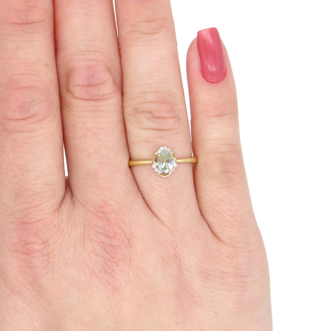 Anel com Água Marinha de 45 Pontos e 10 Diamantes, em Ouro Amarelo 18 Kilates