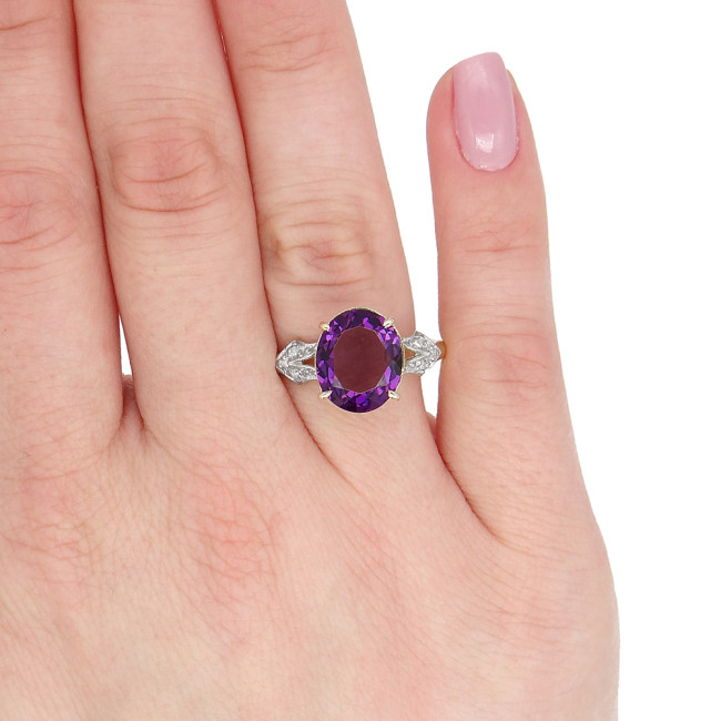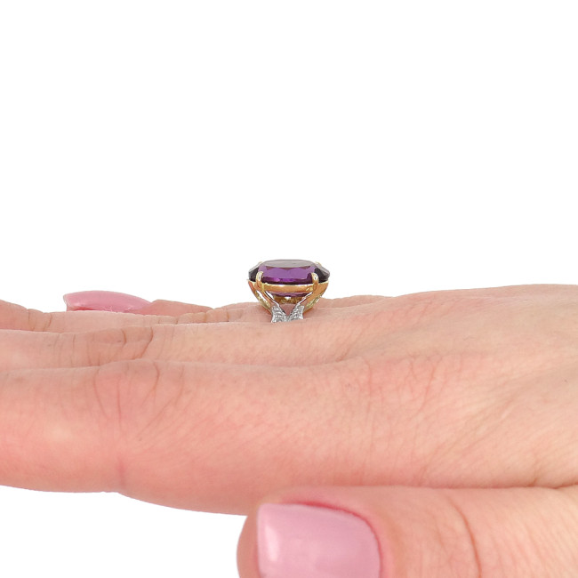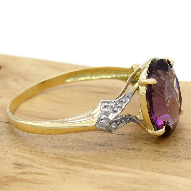 Anel com Ametista e Diamantes, em Ouro Amarelo 18 Kilates