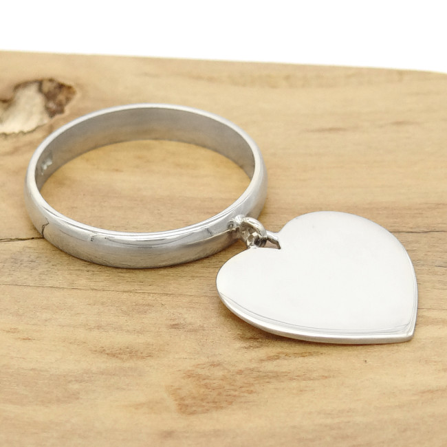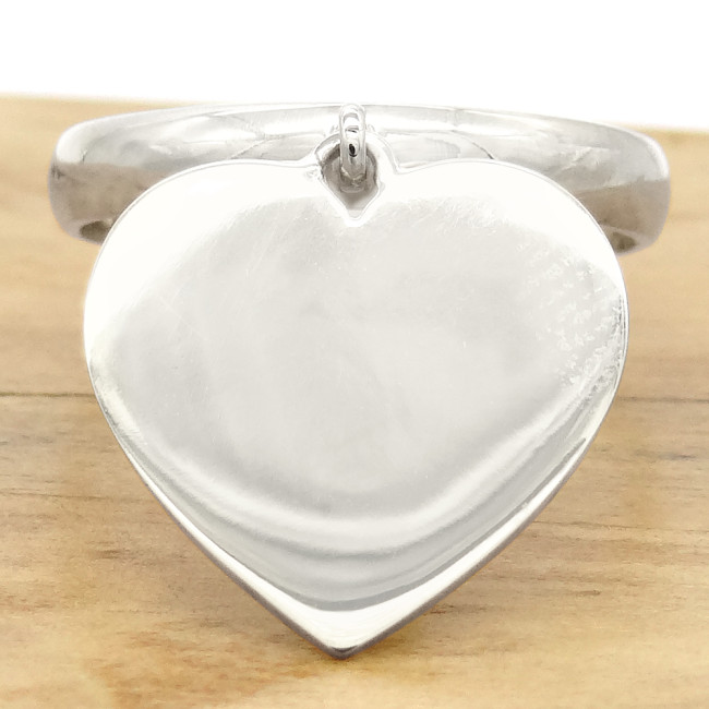 Anel com Berloque Coração, em Ouro Branco 18 Kilates