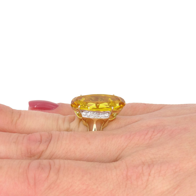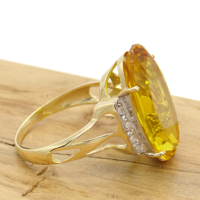 Anel com Citrino e 8 Diamantes, em Ouro Amarelo 18 Kilates