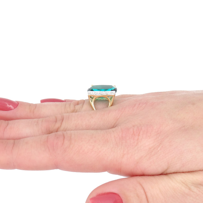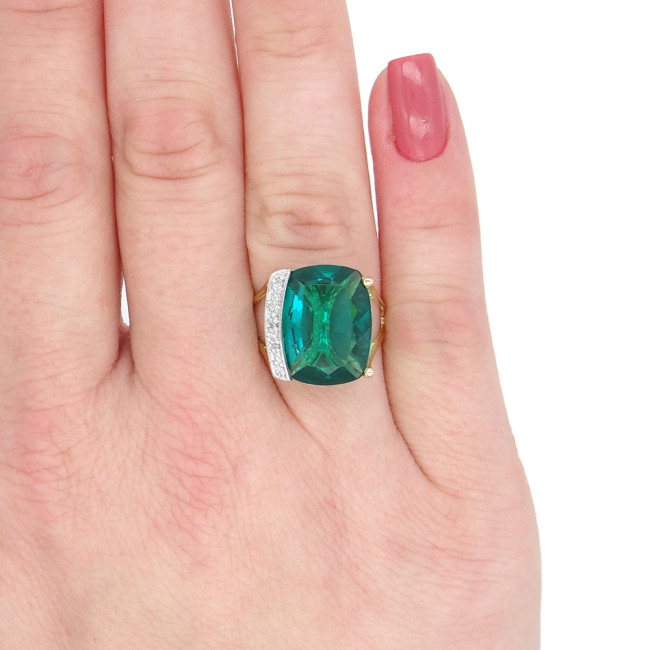 Anel com Cristal de Cristal de Turmalina Paraíba e 5 Diamantes, em Ouro Amarelo 18 Kilates