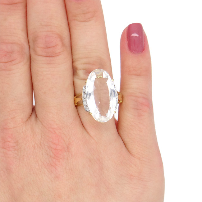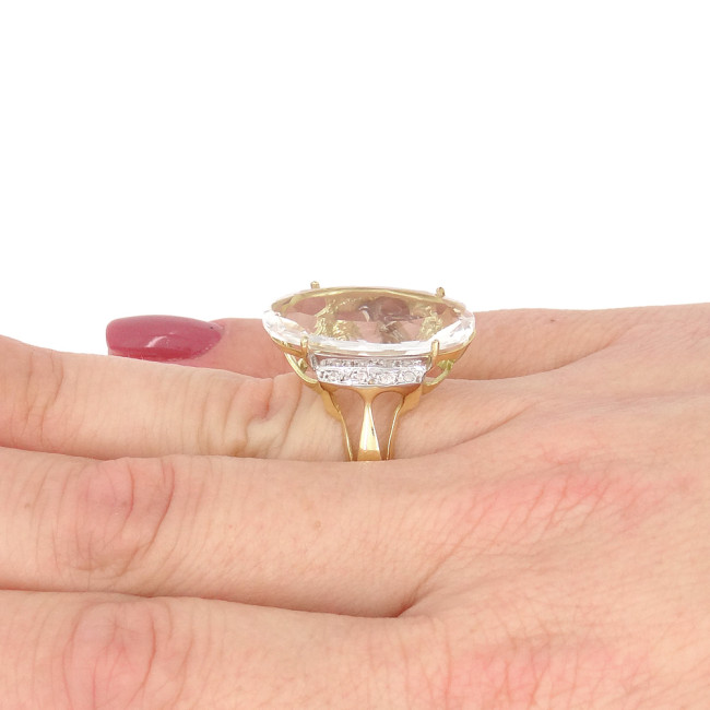 Anel com Cristal de Rocha e 8 Diamantes, em Ouro Amarelo 18 Kilates