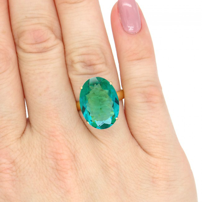 Anel com Cristal de Turmalina Paraíba Oval, em Ouro Amarelo 18 Kilates
