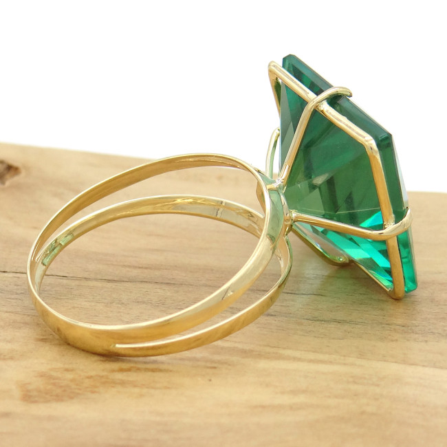 Anel com Cristal de Turmalina Paraíba Quadrado, em Ouro Amarelo 18 Kilates