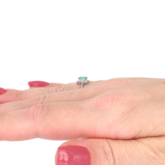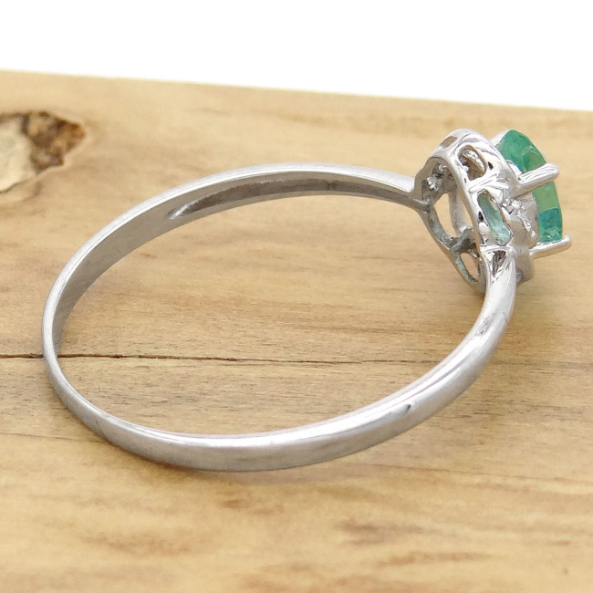 Anel com Esmeralda de 45 Pontos e 10 Diamantes, em Ouro Branco 18 Kilates