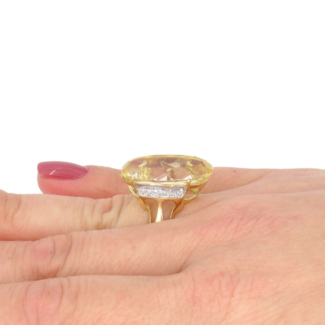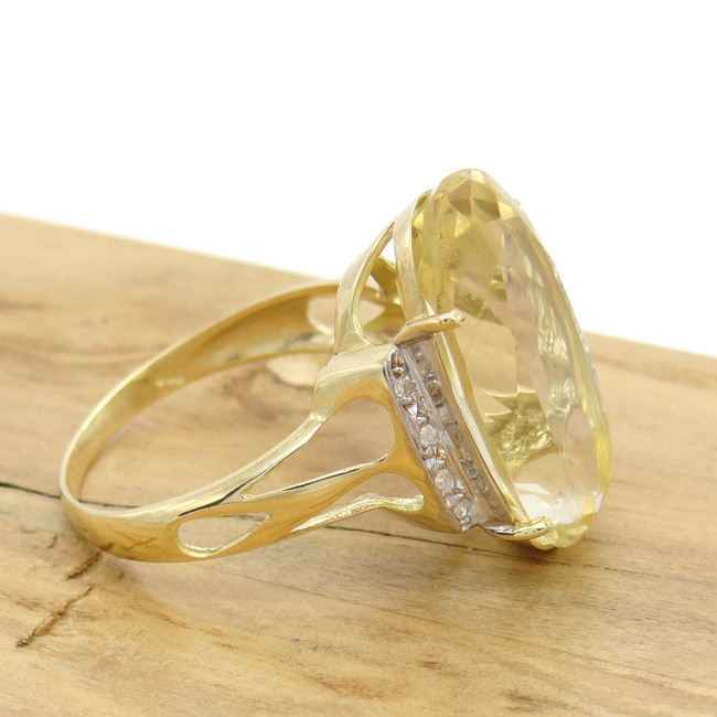 Anel com Green Gold e 8 Diamantes, em Ouro Amarelo 18 Kilates