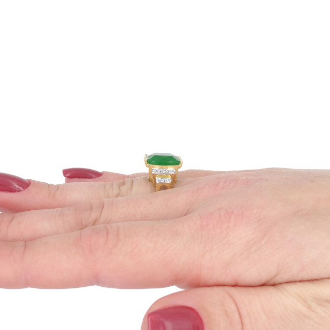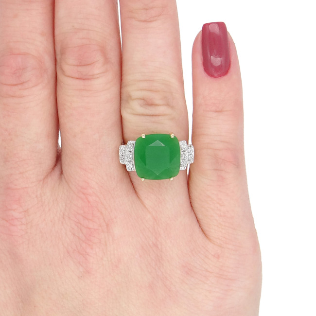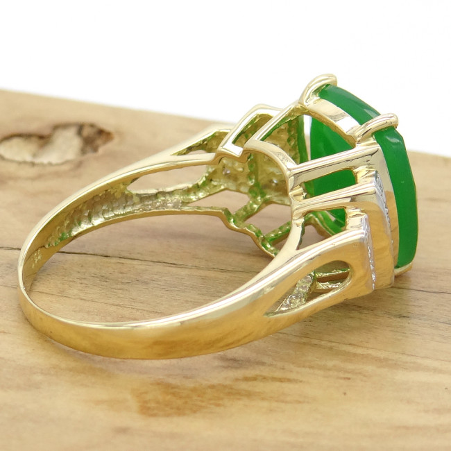 Anel com Jade e 10 Diamantes, em Ouro Amarelo 18 Kilates