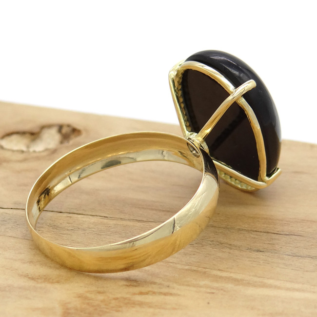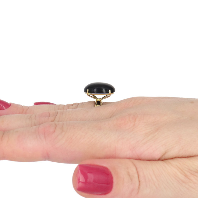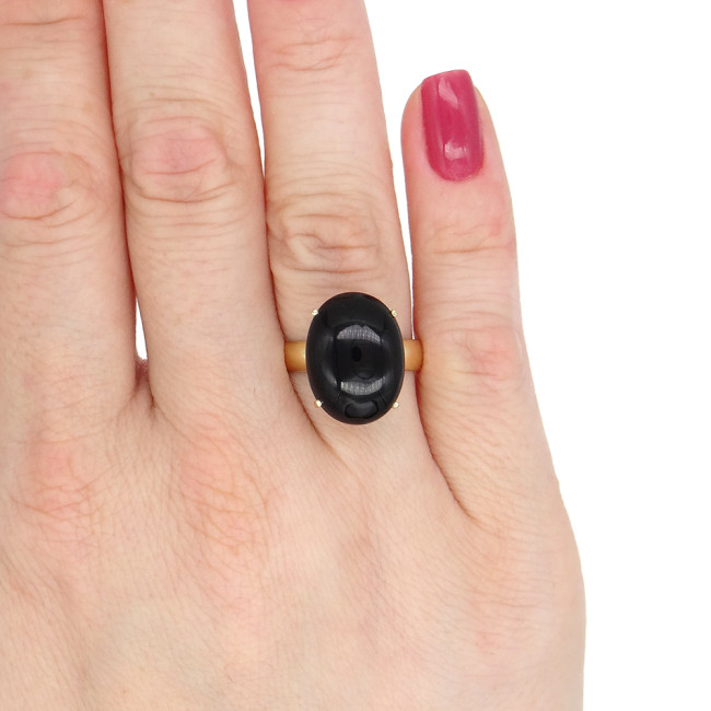 Anel com Ônix Cabochon, em Ouro Amarelo 18 Kilates
