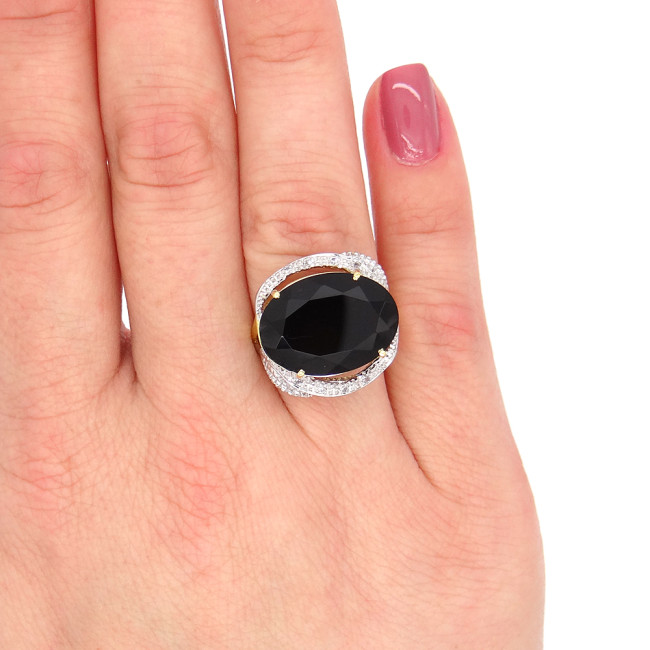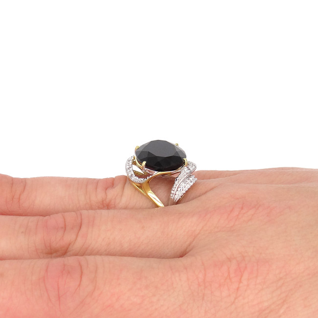 Anel Oval com Ônix e 8 Diamantes, em Ouro Amarelo 18 Kilates