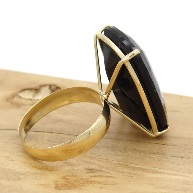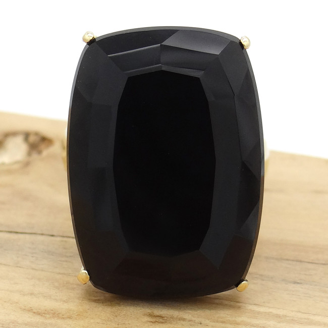 Anel com Ônix Retangular, em Ouro Amarelo 18 Kilates