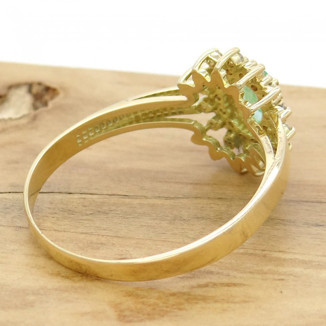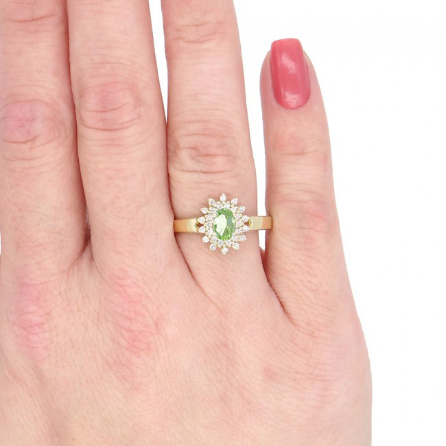 Anel com Peridoto Natural e 28 Diamantes, em Ouro Amarelo 18 Kilates