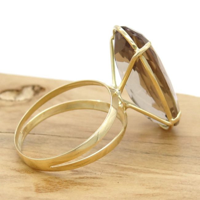 Anel com Quartzo Fumê Oval, em Ouro Amarelo 18 Kilates