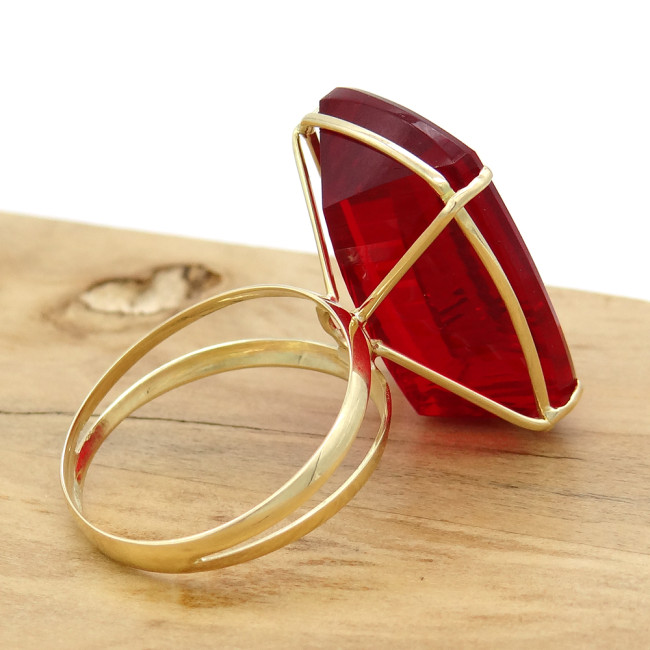 Anel com Quartzo Rubi Retangular, em Ouro Amarelo 18 Kilates