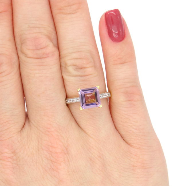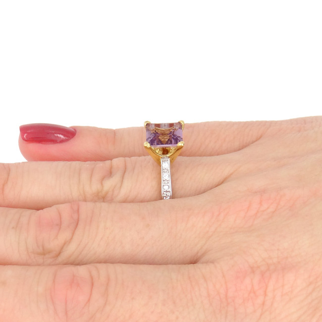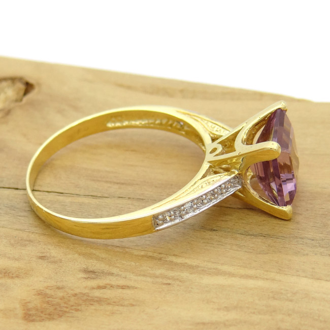 Anel com Rose de France e 8 Diamantes, em Ouro Amarelo 18 Kilates