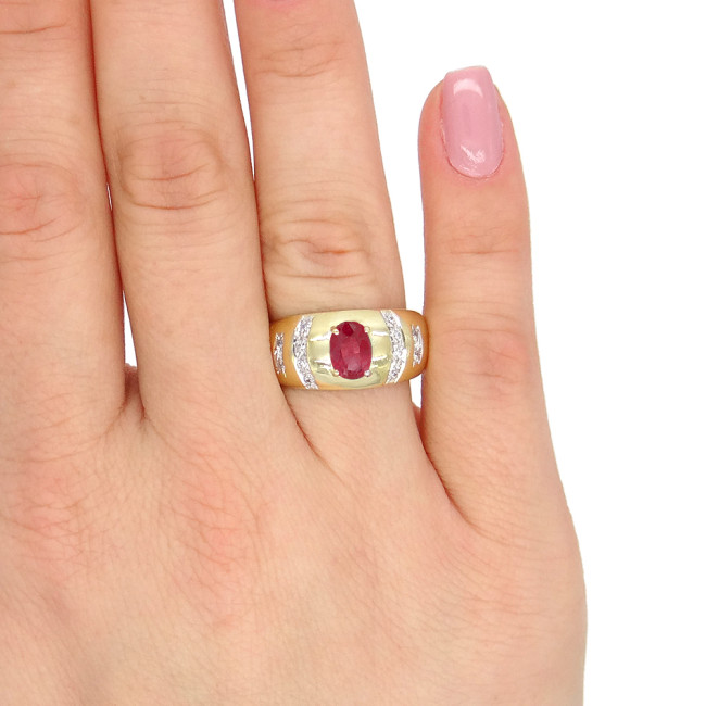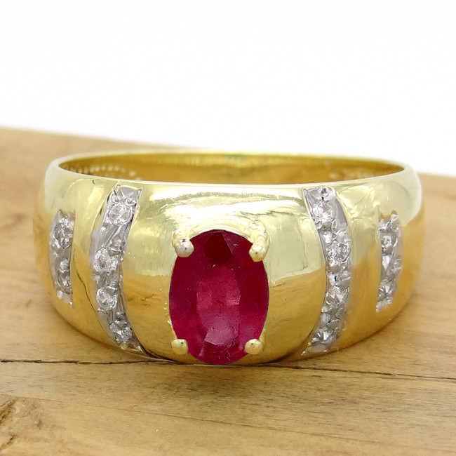 Anel com Rubi de 1 Ct e 12 Diamantes, em Ouro Amarelo 18 Kilates