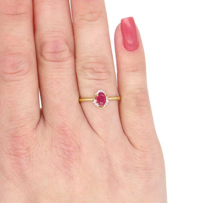 Anel com Rubi de 45 Pontos e 10 Diamantes, em Ouro Amarelo 18 Kilates