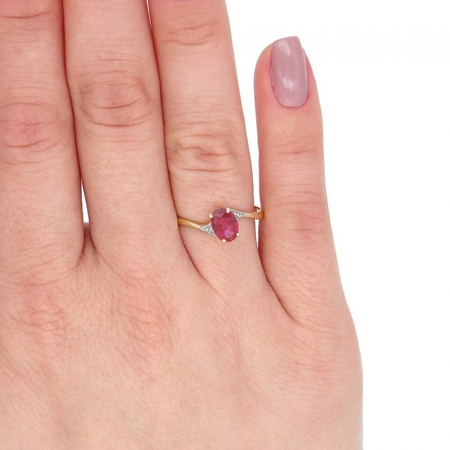 Anel com Rubi e 2 Diamantes, em Ouro Amarelo 18 Kilates