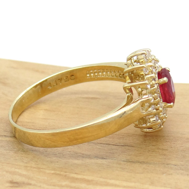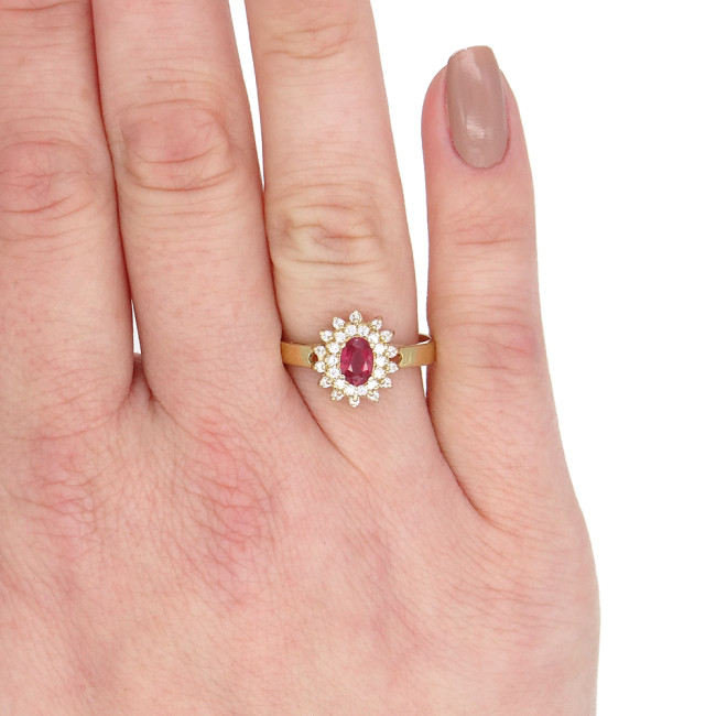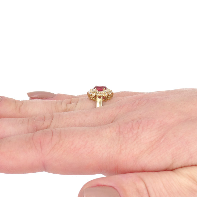 Anel com Rubi e 28 Diamantes, em Ouro Amarelo 18 Kilates