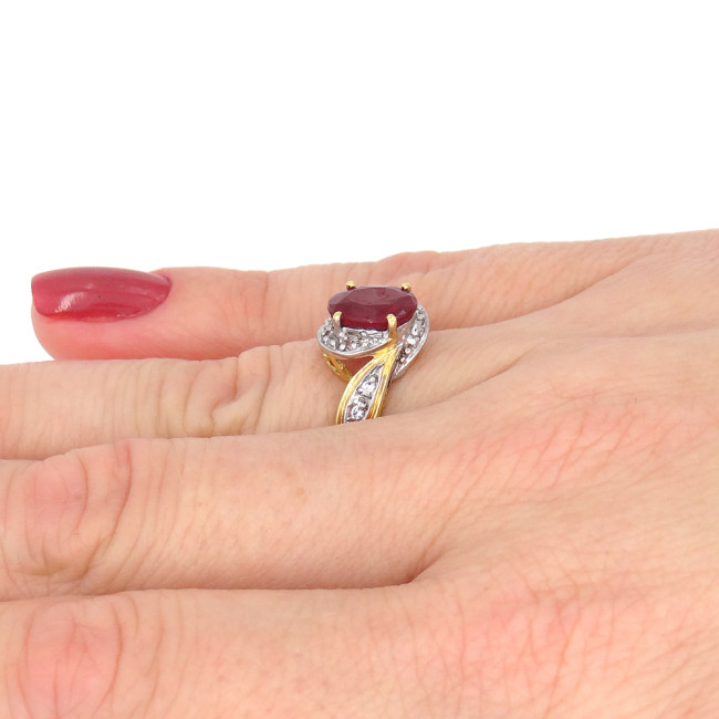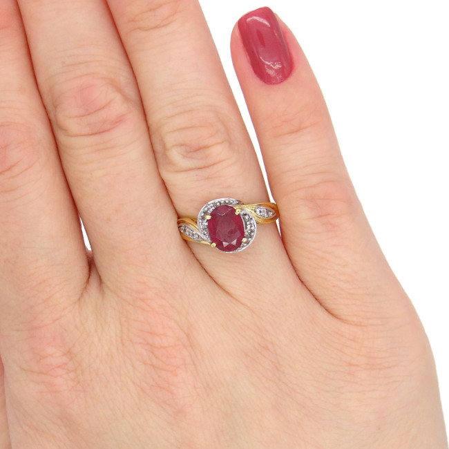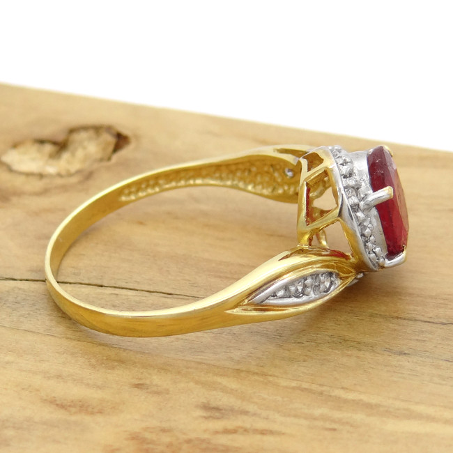 Anel com Rubi e 8 Diamantes, em Ouro Amarelo 18 Kilates