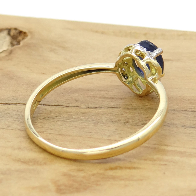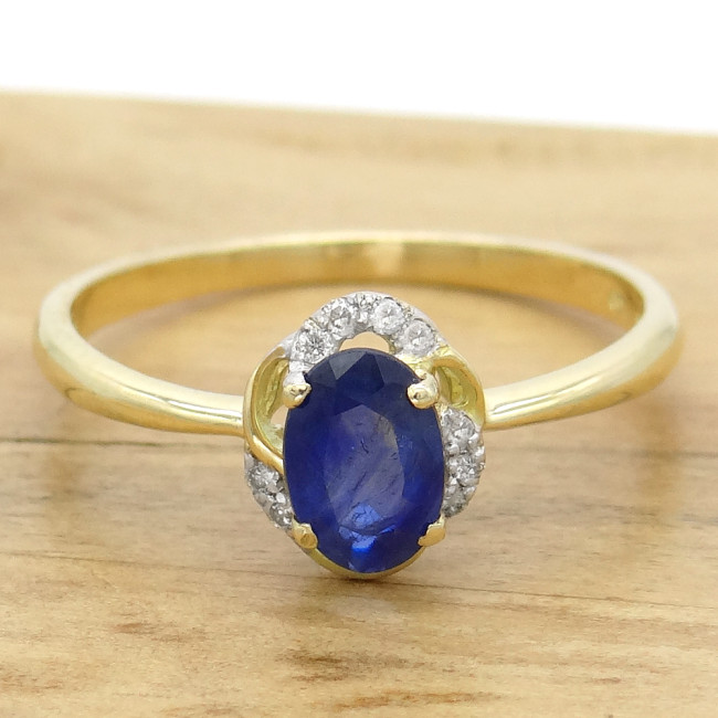 Anel com Safira de 45 Pontos e 10 Diamantes, em Ouro Amarelo 18 Kilates