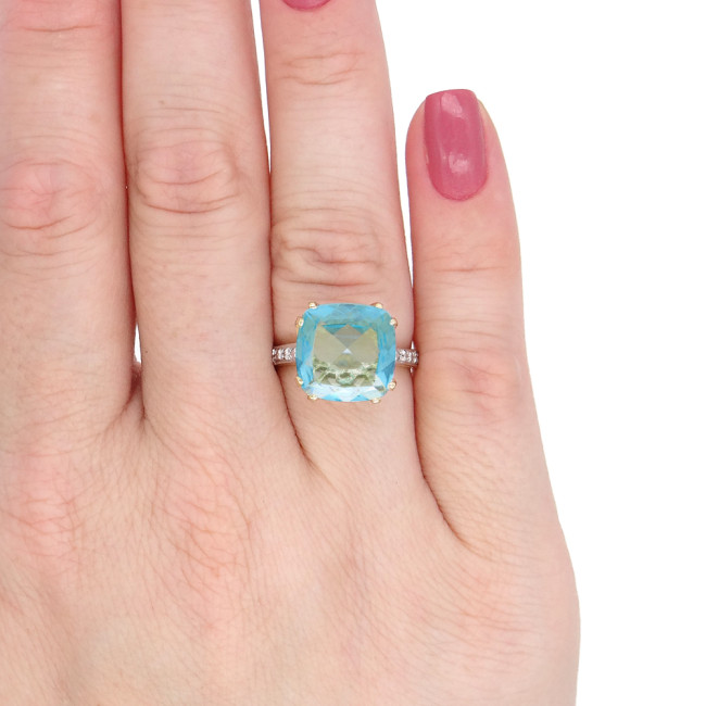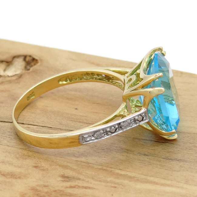 Anel com Sky Blue e 4 Diamantes, em Ouro Amarelo 18 Kilates