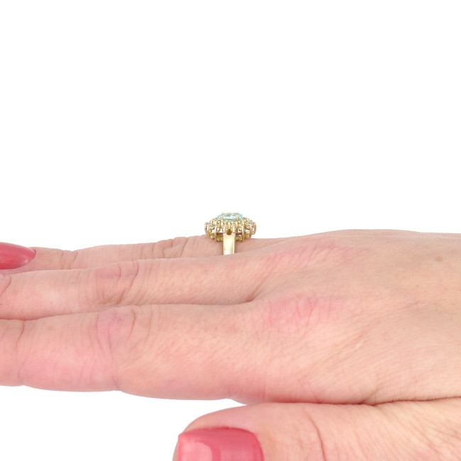 Anel com Turmalina Paraíba Natural e 28 Diamantes, em Ouro Amarelo 18 Kilates