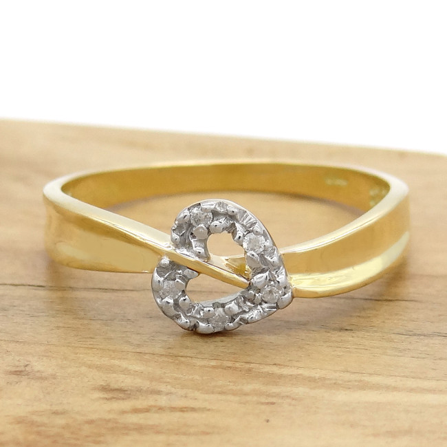 Anel Coração com 5 Diamantes, em Ouro Amarelo 18 Kilates