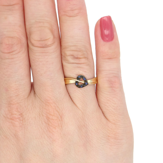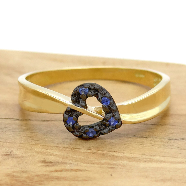 Anel Coração com 5 Safiras, em Ouro Amarelo 18 Kilates